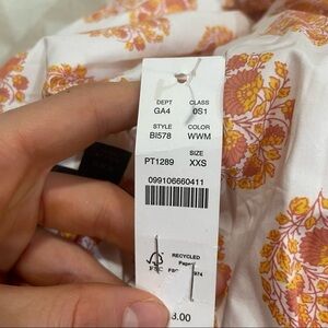 J crew smocked waist mini dress gathered floral block print orange