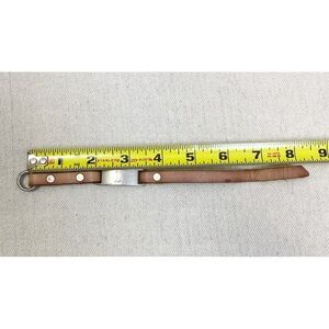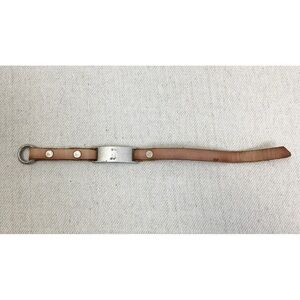 Brown leather with silver tone d ring buckle and Id style plate - gently worn, some color fade and scuffs- broken in not worn out