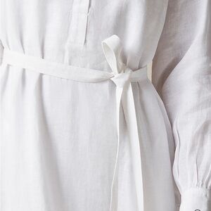 This breezy style comes with a V neckline that shows a hint of skin, a removable tie at the waist for a cinched-in effect and gathered details along the collar and cuffs. Plus, it's crafted from lightweight 100 percent linen to keep you cool all day long.