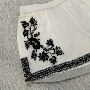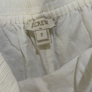 J crew white embroidered floral cotton summer beach shorts size 2, they are pre owned and in good condition. The shorts are embroidered with flowers as you can see. They also are fully lined with side pockets and elastic waistband. They come from a smoke free home.