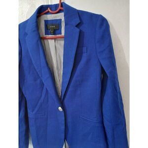 J crew women size 4T cobalt blue fine wool blazer jacket one button