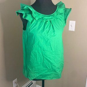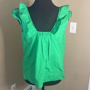 J crew womens 100% cotton green tank with ruffles