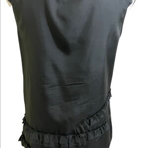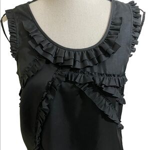 J crew womens blouse Ruffle pattern black sleeveless scoop neckline solid. 100% silk.