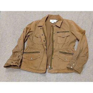 J crew womens medium classic twill chino utility fall jacket tan wheat color