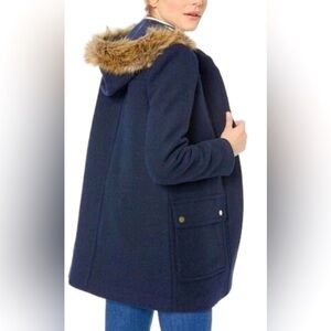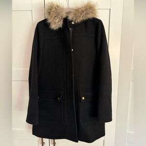 J crew wool blend winter coat faux fur hood size 2 in black casual preppy