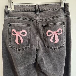 J for Justify Black Straight Leg Jeans with Pink Bow Details NWT Size Small