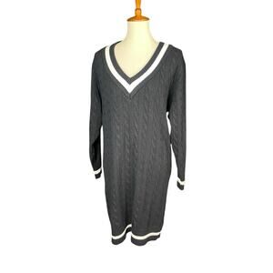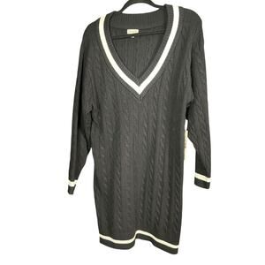 J for Justify Black Sweater Dress Women 1X V-Neck Cable Knit Preppy Bodycon NWT