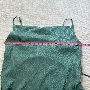 Chic teal mini dress with a unique pattern. Perfect for stylish outings.