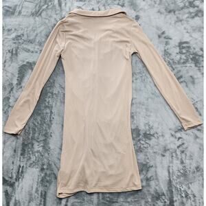 J for Justify Dress Womens L Tan Collared Long Sleeve Ruched Bodycon Stretch