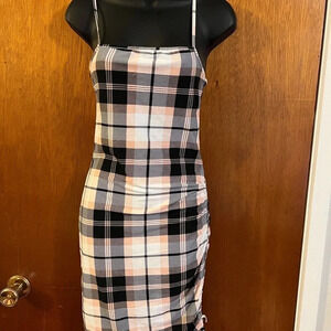 J for Justify Pink, White and Black Plaid Pattern Dress with Sinch Side
