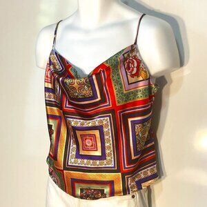 J for Justify SZ L NWOT Bright multi colored satin draped neck camisole Y2K 90's