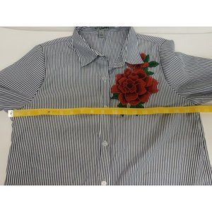 J for Justify Shirt Dress Size Small Embroidered Rose Flowers Striped Floral.
