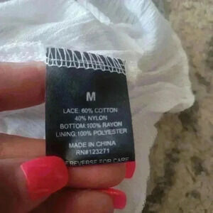 Beautiful! NWOT! White lace padded tank. Adjustable Criss-Cross straps in the back. Stretchy Elastic band in the back. Slight sheer gauzy material. No holes or stains. Comes from a smoke free and pet free home