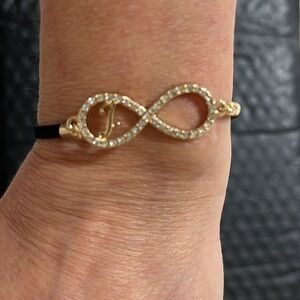 J initial in the middle of infinity sign with rhinestone. brand new .you can make the bracelet shorter and longer.