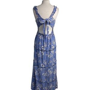 J is for Justify L Tiered blue floral maxi dress sleeveless peplum