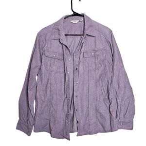 J. jill light purple pearl snap corduroy long sleeve shacket artsy top Size L