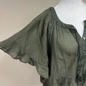 J jill olive green boho flare sleeve cotton top. Size M/L