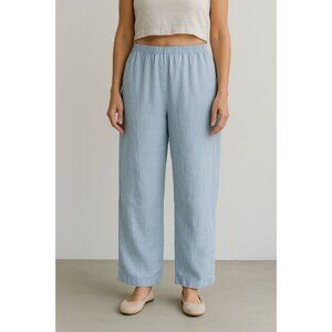 J. jill womens light blue 100% linen elastic waist Pull on Lagenlook pants M