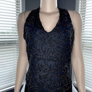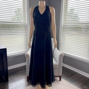 J kara New York Maxi Party Dress Beaded Sleeveless V-Neck