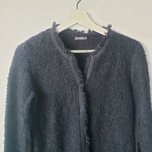 J mclaughlin snap closure fringe mohair wool blend cardigan sweater size XS