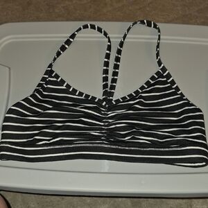 (J15) Old Navy Black and White Striped Sports Bra Size L