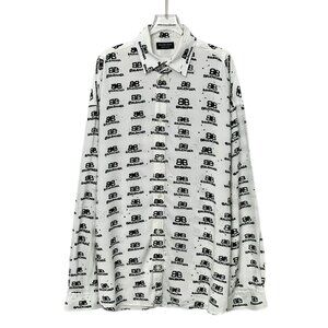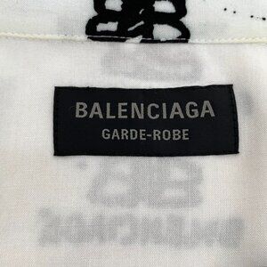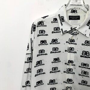 J19512 Balenciaga White logo jacquard full-print lapel single-breasted long-sleeved shirt 1 S size stains