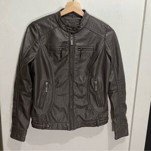 J2 Gray Faux Leather Zip Bomber Jacket Medium