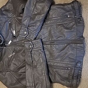 J2 Jou Jou Juniors' Faux-Leather Knit-Hood Jacket