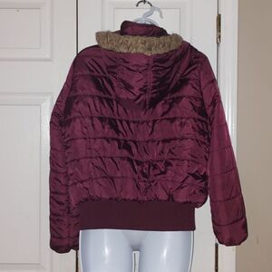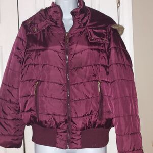 J2 Puffy plum color winter coat faux fur hood Juniors