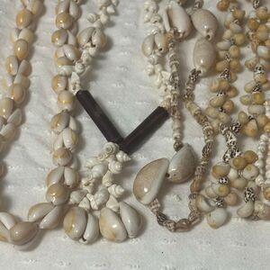 Bulk bundle of ten unique shell necklaces in as is condition with some possible wear.