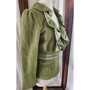 ▪︎DESCRIPTION: Beautiful dressy wool jacket blazer with ruffled front, two decorative buttons, and purple floral lining