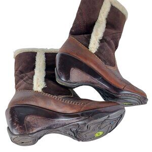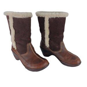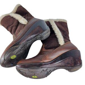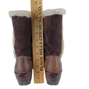 J-41 ADVENTURE ON Naples Boots Women Size 7.5 Brown Wedge Suede Leather Fur