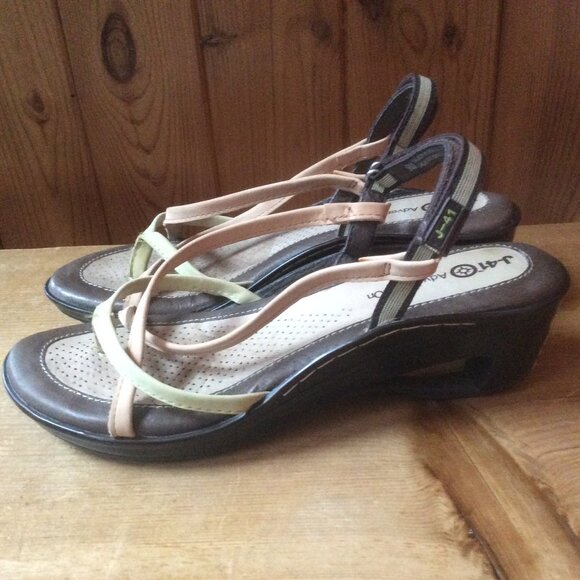 J-41 Adventure On Galaxy Leather & Vegan Low Wedge Strappy Thong Sandal Size 9M