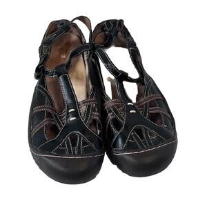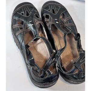 J-41 Jeep Womens 9M Sandals Black Leather Adventure Dune Hiking Rubber Traction.