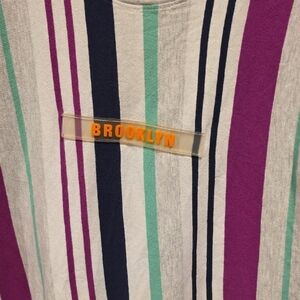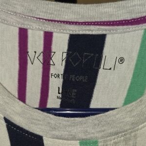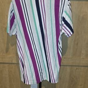 (J42) Striped Short Sleeve Tee - Purple, Green, White Womans Sz L