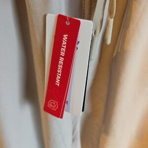 Stylish Baleaf clothing in tan and cream. Soft fabric with a sleek design.