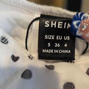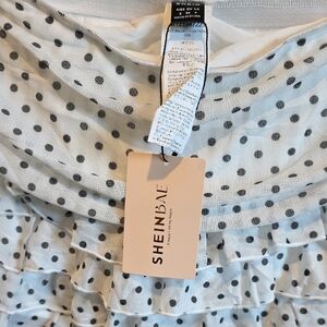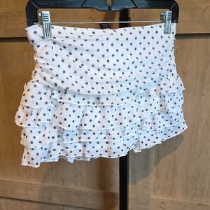 (J43) SHEIN White and Black Polka Dot Mini Skirt Sz M