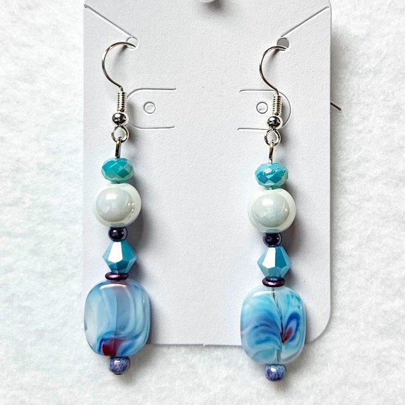 J45 Handmade Beaded Blue and Purple Dangle Earrings
