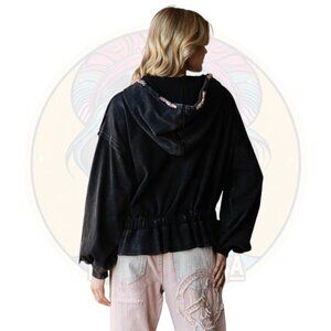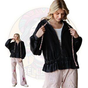 J505B OLI & HALI Black Soft Washed Zip Oversized Hoodie Jacket