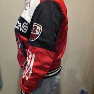 (J52) Speed Racing Men's Sz M Bomber Jacket - Red, Black, White