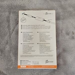 The J5Create JUE130 SuperSpeed USB 3.0 Gigabit Ethernet Adapter is a compact and portable adapter designed for both Windows and Mac devices. It features a USB 3.0 connector on one end and an Ethernet (RJ-45) Female connector on the other, allowing for a high-speed Gigabit Ethernet connection. The adapter is silver in color and has a cable length of 5.71 inches, making it convenient for on-the-go use. Perfect for those needing to add a reliable Ethernet connection to their laptops or computers without built-in ports, this adapter is compatible with a variety of devices.