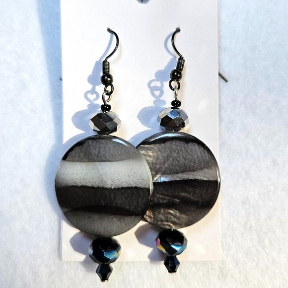 J72 Handmade Black and Silver Shell Dangle Earrings
