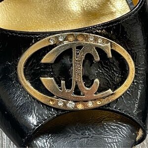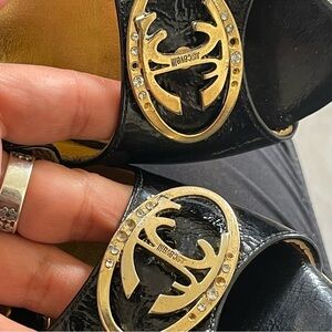 J8UST CAVALLI open toe Heels strappy size 38 US 7 black gold