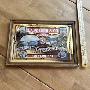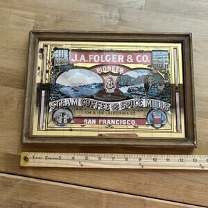 J.A. Folger & Co. Pioneer Steam Coffee Spice Mills Mirror Advertising Vintage
