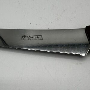 Keywords: J.A. Henckels, Friodur, Steak Knife, Serrated Knife, Wood Handle, Vintage Knife, Kitchen Knife, Dining, Cutlery, Kitchenware, German Knife, Chef Knife, Meat Knife, Dinner Party, Collectible Knife