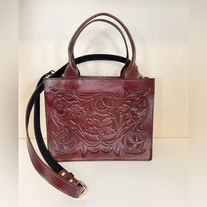 Beautifully tooled leather for a Southwest Western Bohemian style. Gold hardware. Zipper pull still covered in paper. Questions? Leave a comment below!