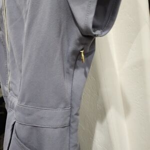 JAANUU Gray Gold Zipper Scrub Top 96215 xs. Great Pre-owned Condition. Approximate Measurements are