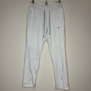 JAANUU White Drawstring Waist Comfy Nursing Scrub Joggers