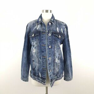 Style JS-20170407. Denim jacket with embellished back. Distressed. Oversized. Extra buttons on inside.