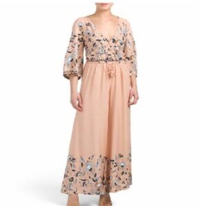 JAASE Pink Blue White Floral Print Boho Jumpsuit